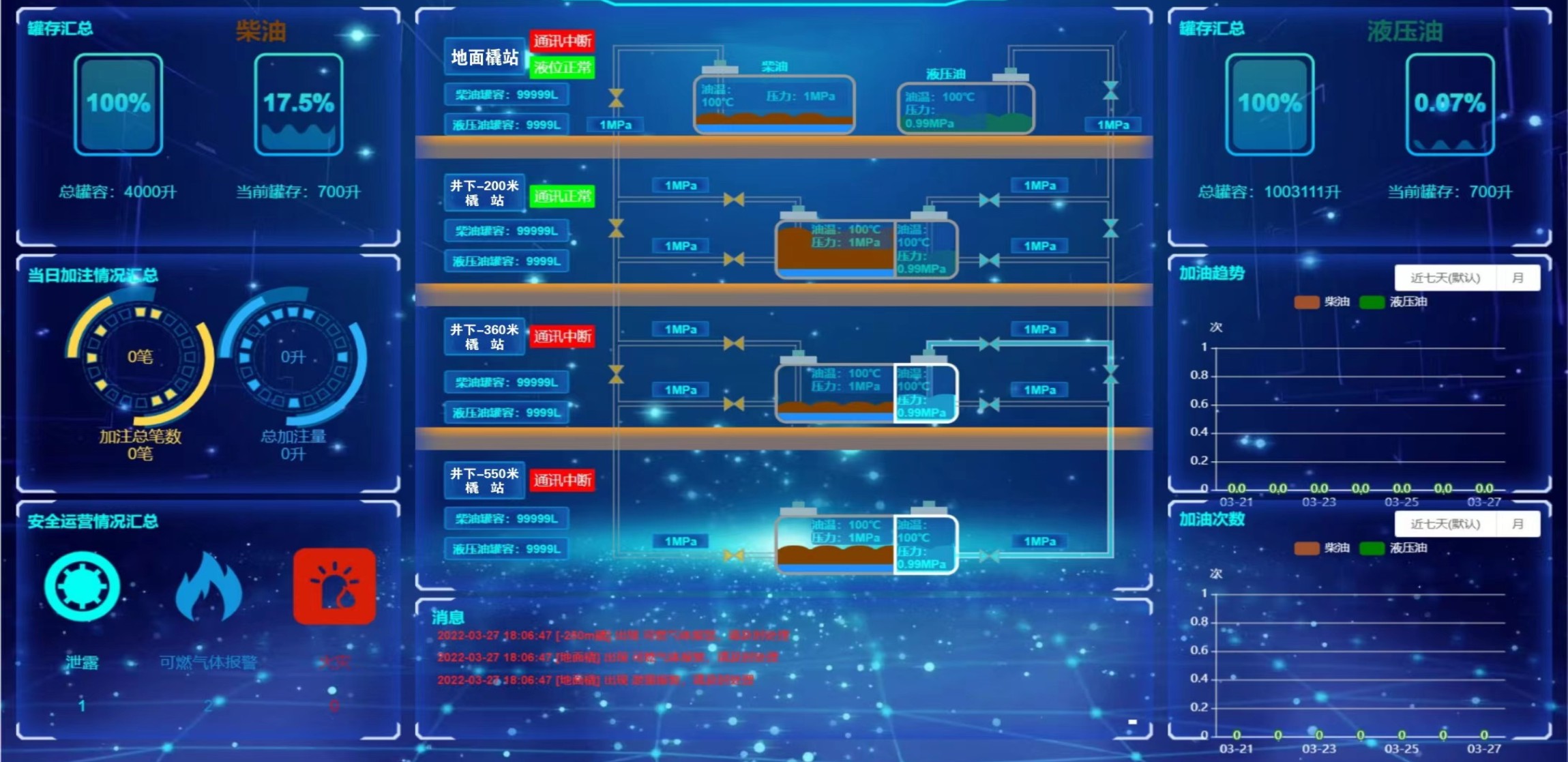 凡口鉛鋅礦井下680米智能供油系統(tǒng) 目前正有序施工中, 預計9月底完工并投入使用。該項目為全國首創(chuàng), 由韶關企業(yè)進行技術攻堅 并申請多項國家專利, 擬申報吉尼斯世界紀錄 “全球最深的智能供油系統(tǒng)”。 凡口鉛鋅礦井下智能供油系統(tǒng) 需在地面設置橇裝加油裝置, 并分別在地下 330米、480米和680米處 建設智能化供油系統(tǒng), 通過鉆孔鋪設輸油管線, 將油品從地面輸送到井下。 地下330米智能加油點, 目前已進入收尾階段, 現(xiàn)場有兩根 從地面裝置接下來的輸油管, 用于工程車加油, 另一邊也有兩根輸油管輸送到 地下480米和680米的智能加油點。 別看油管很細,鉆孔不大, 但施工難度并不小, 全長3千多米的輸油管, 垂直打孔偏差不能超過1米。 作為亞洲最大的 單體鉛鋅銀礦生產(chǎn)基地, 凡口鉛鋅礦 有井下工程車輛和設備100多臺, 井下用油量大。 井下智能化供油系統(tǒng)啟用后, 不僅解決井下用油安全、環(huán)保風險, 同時降低生產(chǎn)用油成本, 推進凡口鉛鋅礦建設智能化礦山, 實現(xiàn)“無人開采”。 如果鉆孔偏差太大,就找不到鉆下來的孔,影響輸油管道的布設,增大成本。3千多米有5千多個焊接點,所有的焊接口都要達到高壓管道的焊接要求,這個項目是全國首創(chuàng),在全國所有礦山企業(yè)中,我們是首次使用通過輸油管道往井下輸油,并且實現(xiàn)智能控制的方案。 這個月底把地下330米加油點完工,開始加油,9月底把底下480米和680米開通使用。希望通過這個項目打造創(chuàng)新科技的韶關樣板,把先進的經(jīng)驗和技術推廣到全省、全國乃至全球。